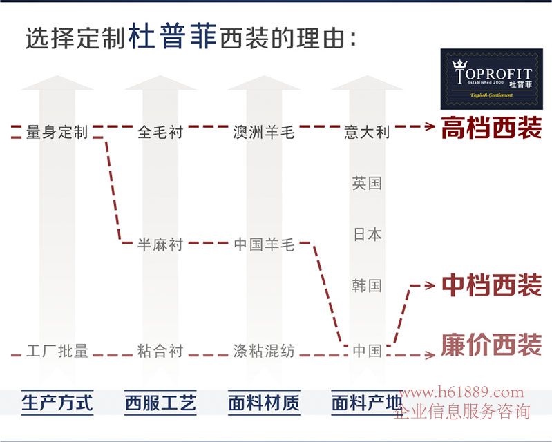 高端西服定制、個(gè)性化定制柔性化生產(chǎn)、結(jié)合英國(guó)和意大利裁縫的經(jīng)驗(yàn)與神隨、成功開發(fā)設(shè)計(jì)了一人一版智慧電腦版坐系統(tǒng)、能配合不同人仕的體型和體型特征、高效而精準(zhǔn)繪制個(gè)性化款式細(xì)節(jié)的經(jīng)典、時(shí)尚西服、配合全自動(dòng)電腦圓刀裁床、衣片剪裁尺寸不走樣、縫邊流暢圓順、豐富制作國(guó)際知名品牌的經(jīng)驗(yàn)生產(chǎn)團(tuán)隊(duì)、高端洋服馬尾毛襯胸樸撬襟的精湛工藝、全套高端西裝縫制專用設(shè)備:先進(jìn)全套重型蒸汽整燙設(shè)備、定型西服各部位、使每一套成品西裝更立體、更挺括香港、澳門、深圳高級(jí)洋服店委托生產(chǎn)廠家;擁有注冊(cè)品牌 TOPROFIT杜普菲 實(shí)現(xiàn)先進(jìn)定制廠家必要具備的智能化、柔性化、效率化、標(biāo)準(zhǔn)化、支撐規(guī)?;ㄖ粕a(chǎn)