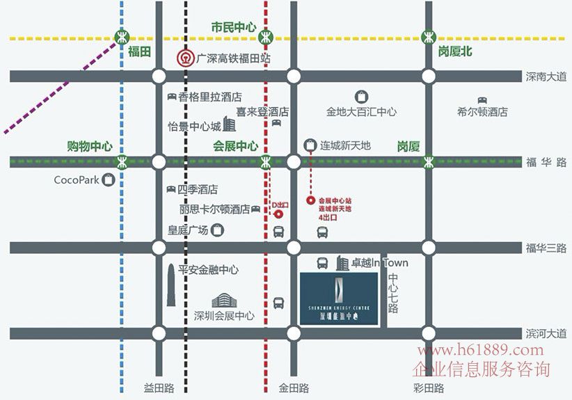 地鐵:會展中心站:地鐵1號線(羅寶線) 、地鐵4號線(龍華線)