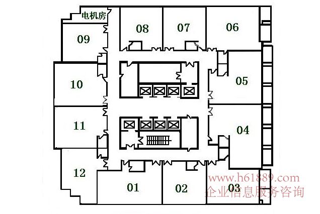 樓層:1-4層裙樓、5-9層賓館客房、10層以上辦公樓