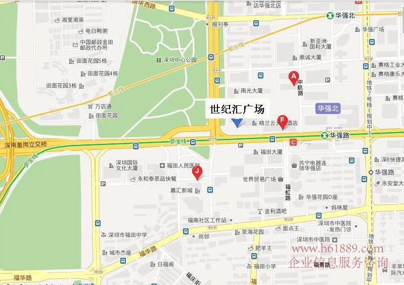 世紀(jì)匯廣場(chǎng)(交通銀行大廈)出租單價(jià):155元/平米/月 地鐵1號(hào)線(xiàn)華強(qiáng)站 出租 交通位置圖片