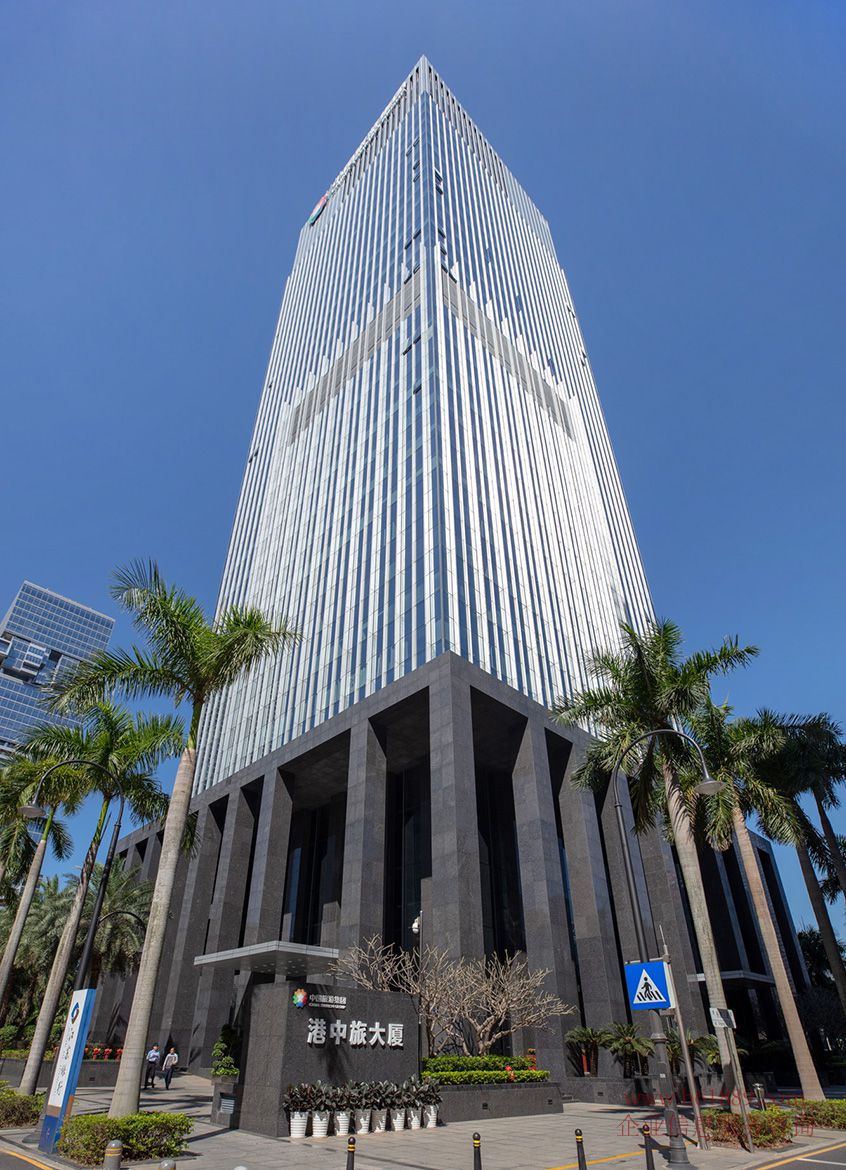 中國港中旅大廈由澳大利亞JPW建筑景觀設(shè)計(jì)事務(wù)所擔(dān)綱建筑方案設(shè)計(jì)、采用水晶體建筑形象、18米高氣派大堂、4.2米舒適的層高、頂部空中風(fēng)景花園