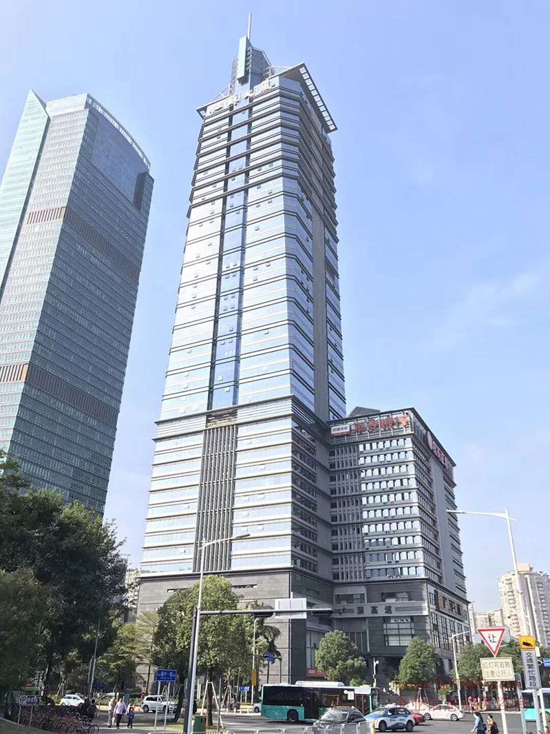 江蘇大廈位于深圳市中心區(qū):東鄰市民中心、南接高交會(huì)展覽中心、西連黃埔雅苑、北望蓮花山、是深圳市中心區(qū)中軸線西區(qū)的建筑制高點(diǎn)、建筑高度185m、塔尖高度208m、主體47層,副樓15層、大廈具備寫字辦公、公寓及商業(yè)三大功能