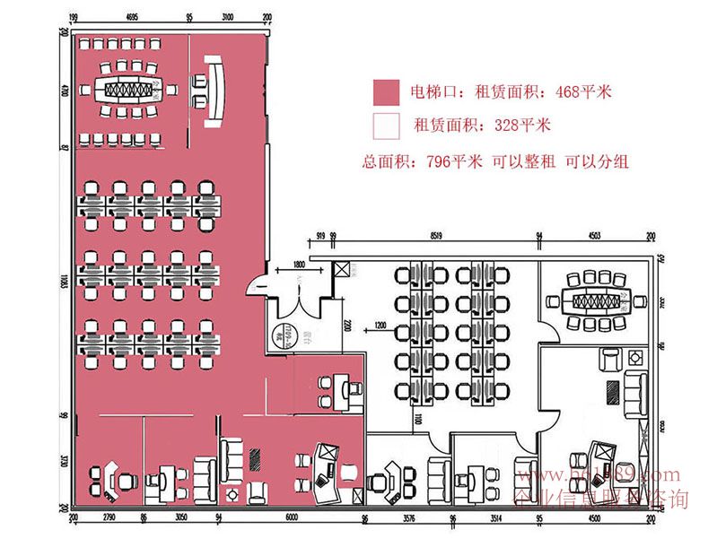 樓層:02樓、出租面積:939平米、出租單價:180元/平米/月、出租總價:169020元/月