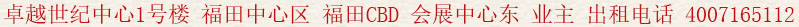 大廈地址:卓越世紀(jì)中心1號(hào)樓位于深圳市福田區(qū)金田路2030號(hào) 低區(qū) | 聯(lián)系電話:0755-61967921 |