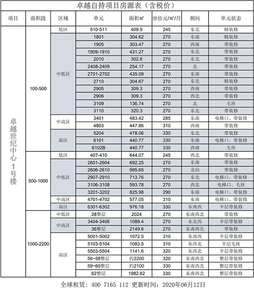 卓越自持項(xiàng)目房源表(含稅價(jià))