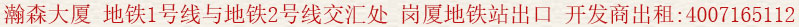 瀚森大廈 地鐵1號線與地鐵2號線交匯處 崗廈地鐵站出口 開發(fā)商出租