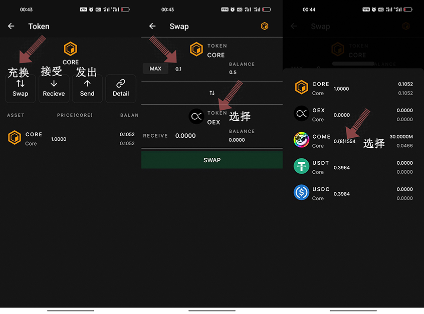 3:用:0.1個(gè)CORE“酷爾幣”兌換:COME 幣:完成任務(wù)