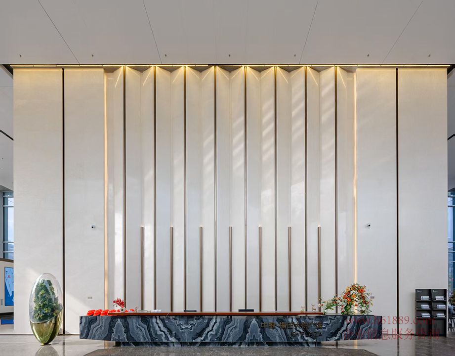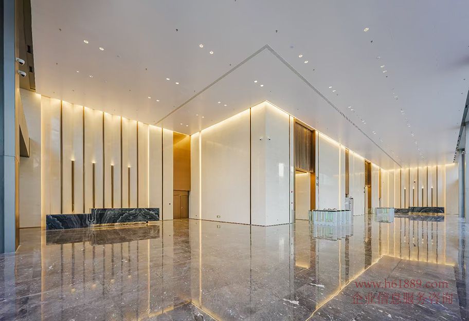 大堂挑高:15m;1500m2奢闊接待大堂、線條挺拔、美觀