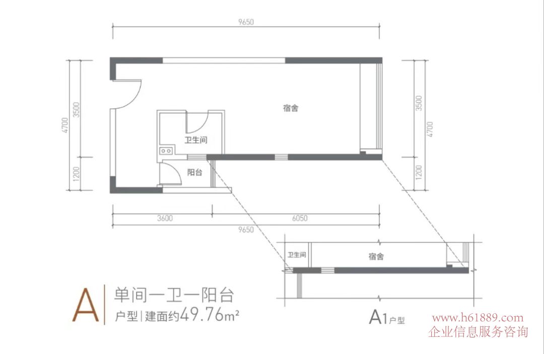 A戶型:49-51㎡ 1房1廳 戶型圖
