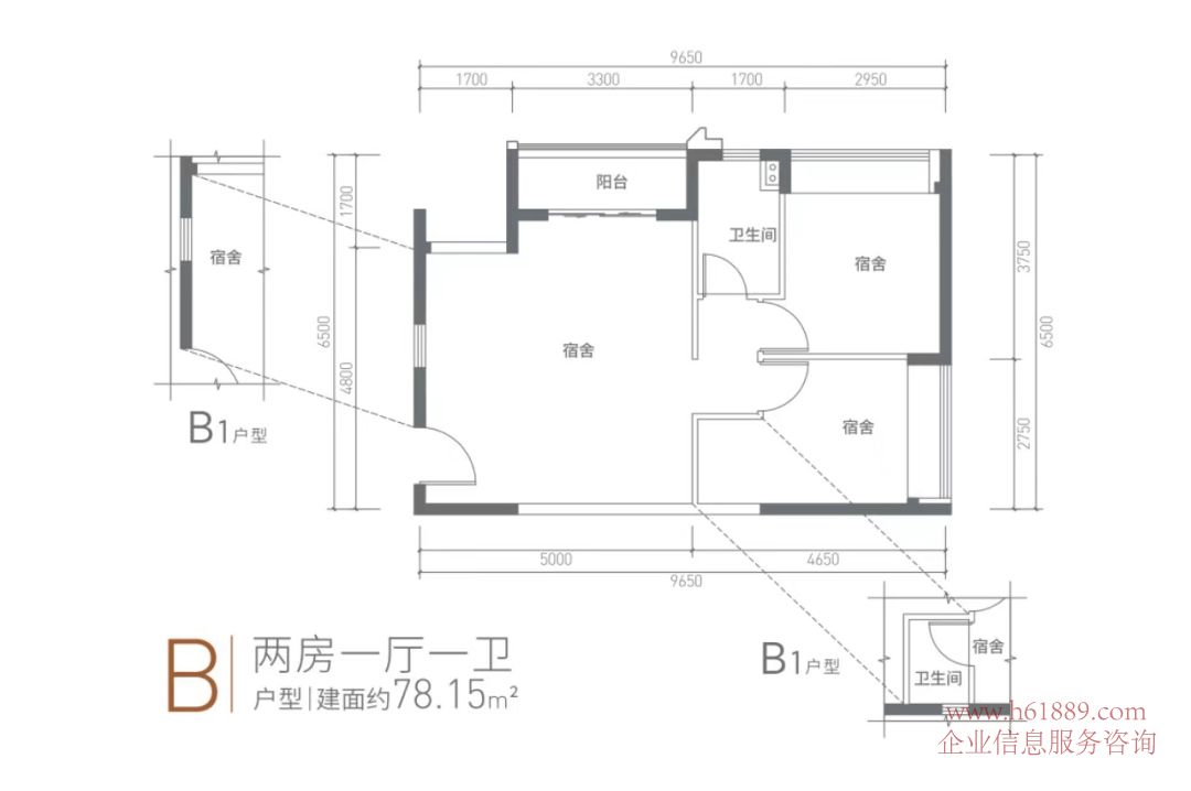 B戶型:78-79㎡ 2房 1廳 戶型圖
