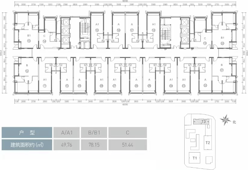 T1棟辦公參數(shù):(建筑面積約:68572.43m2)