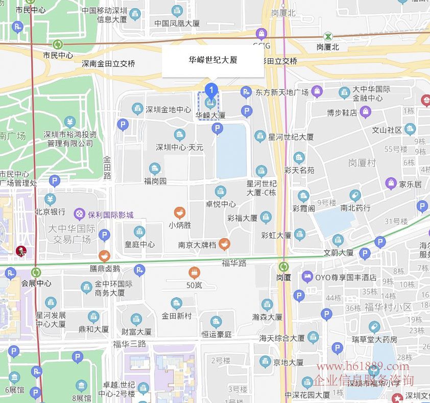 福田區(qū) 崗廈 華嶸世紀大廈 租賃中心 福田區(qū) 崗廈北地鐵站【深圳之眼】華嶸世紀大廈 交通位置圖片