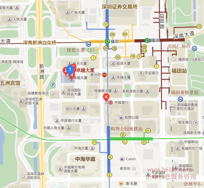 5:交通位置:深南路.臨近購(gòu)物公園、地鐵站、福田地鐵站出口、廣深港高鐵站出口、投資大廈公交站、深圳證券交易所等