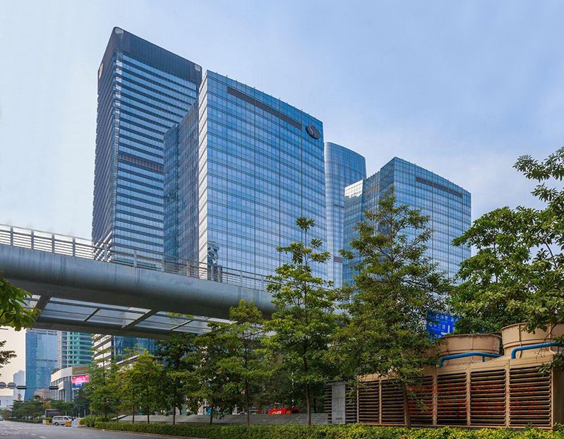 嘉里建設廣場分2期開發(fā)、1期包括2棟甲級寫字樓(嘉里建設大廈)和香格里拉大酒店、寫字樓部分建筑面積7.5萬平方米、單層面積1500平方米