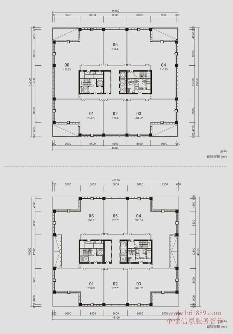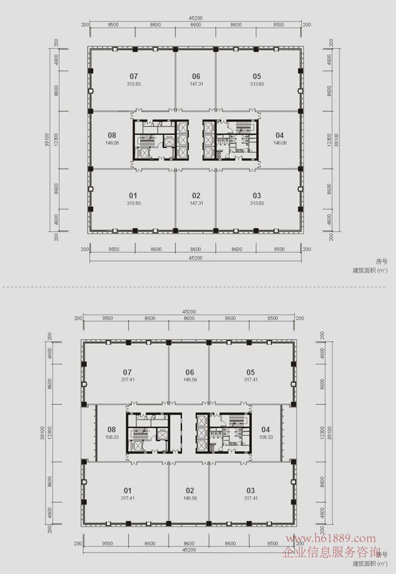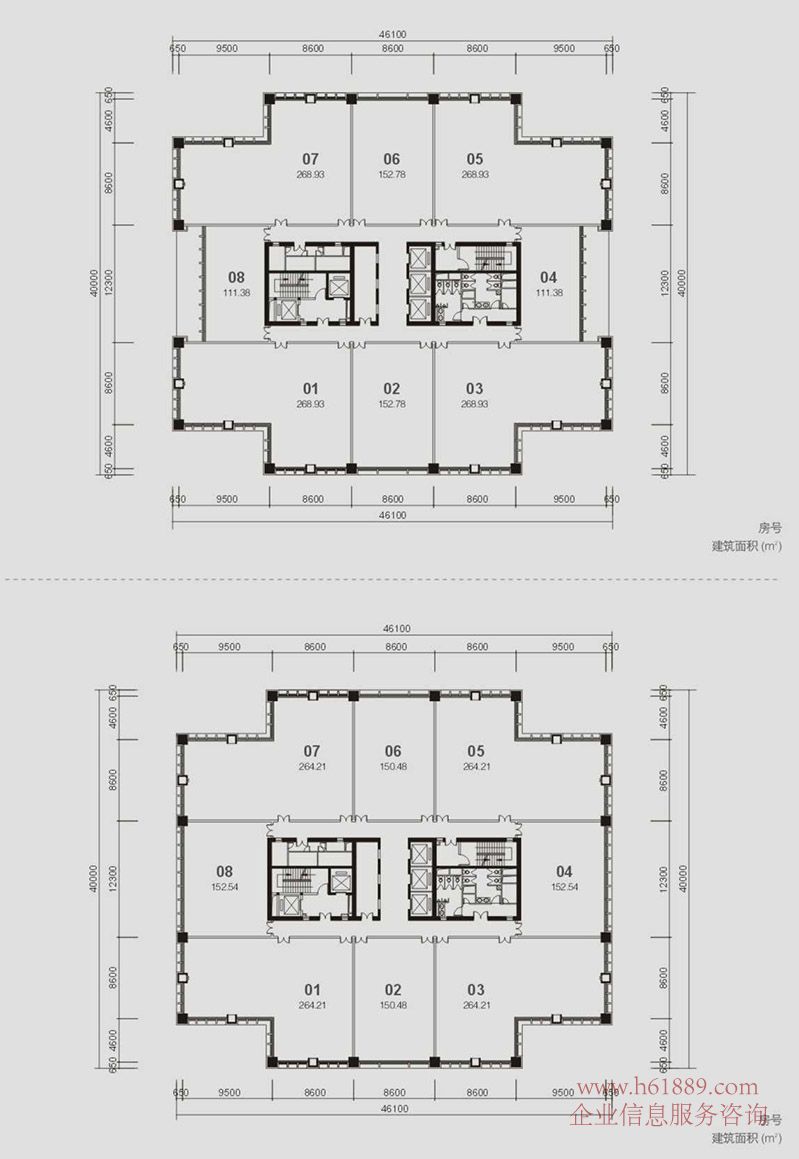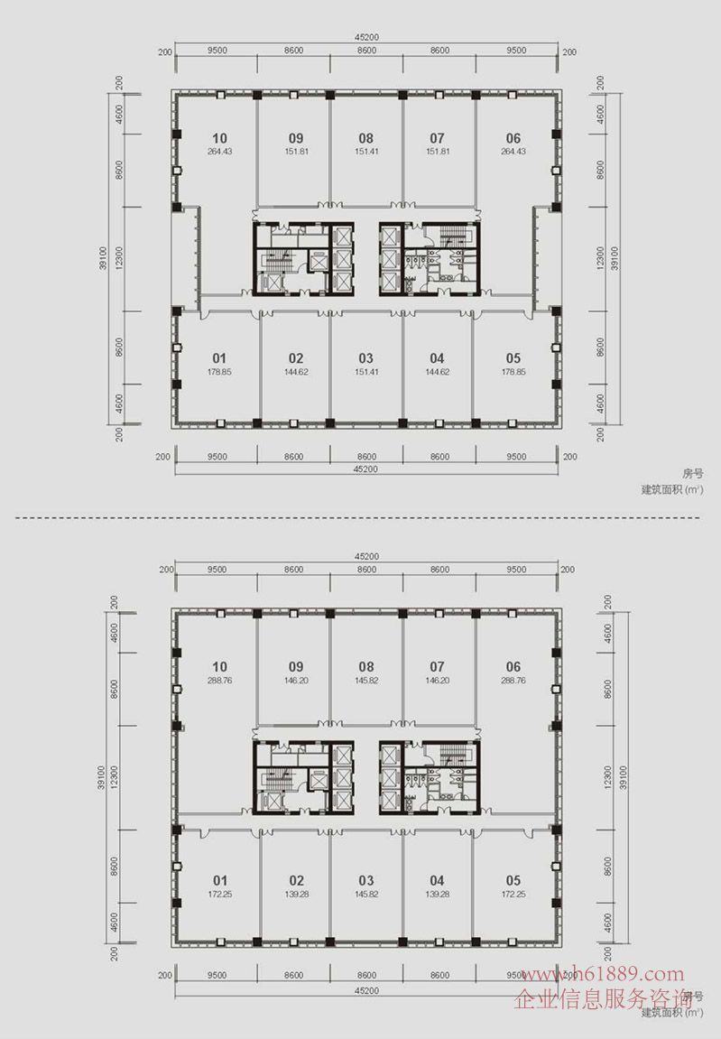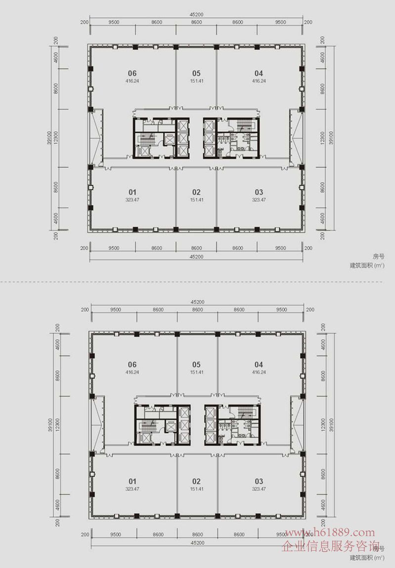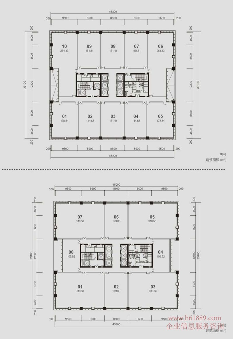 戶型面積:151平米、178平米、265平米、288平米、313平米、380平米、416平米、660平米、整層南積:1330平米到2000平米、面積任意組合