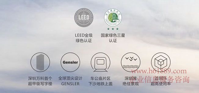 LEED金級(jí)綠色認(rèn)證、國(guó)家綠色三星認(rèn)證、深圳萬(wàn)科首個(gè)超甲級(jí)寫(xiě)字樓、全球頂尖設(shè)計(jì)GENSLER、車(chē)公廟片區(qū)下沙地鐵上蓋、深圳灣絕佳景觀、近80%超高使用率