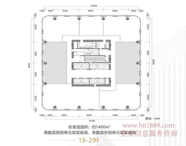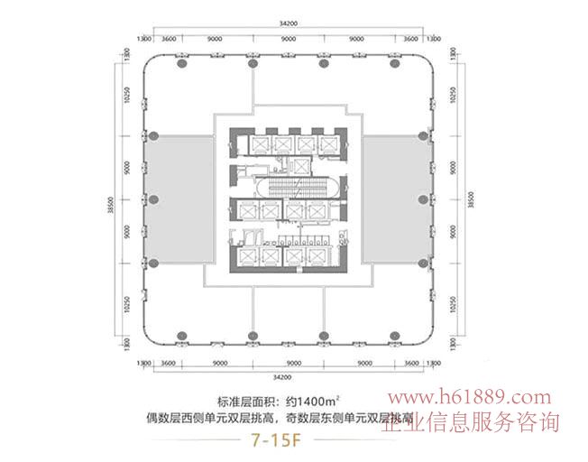 層高:每層特意設(shè)計企業(yè)大堂:層高:8.4米、東西交錯