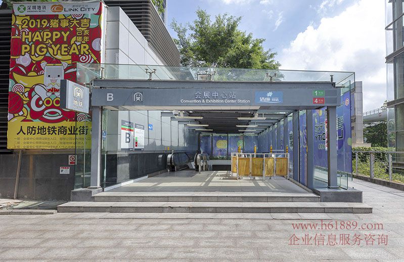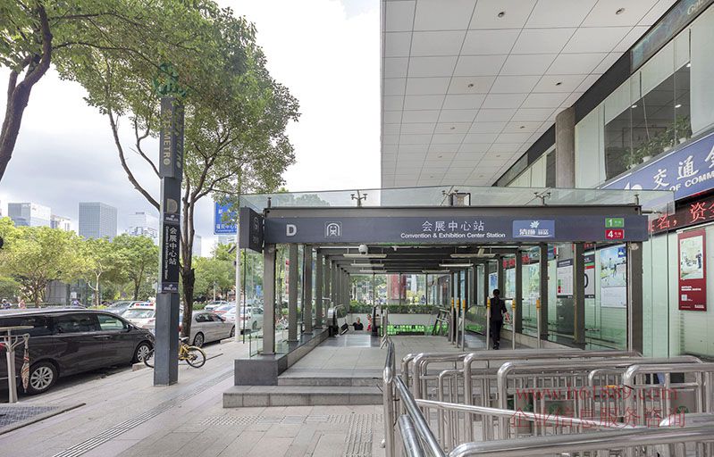 會展中心站【會展中心地鐵站】:C出口:中心五路、皇庭廣場、會展中心、國際商會中心、卓越時代廣場、信息樞紐大廈、晶島國際廣場等地