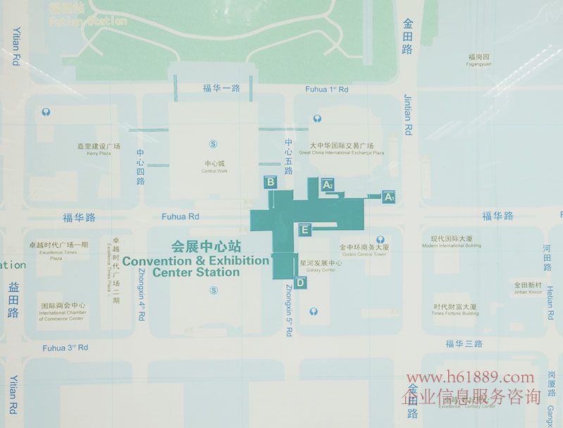 會展中心站【會展中心地鐵站】:B出口:通往中心五路、會展中心地鐵站公交站、怡景中心城、福華一路等地