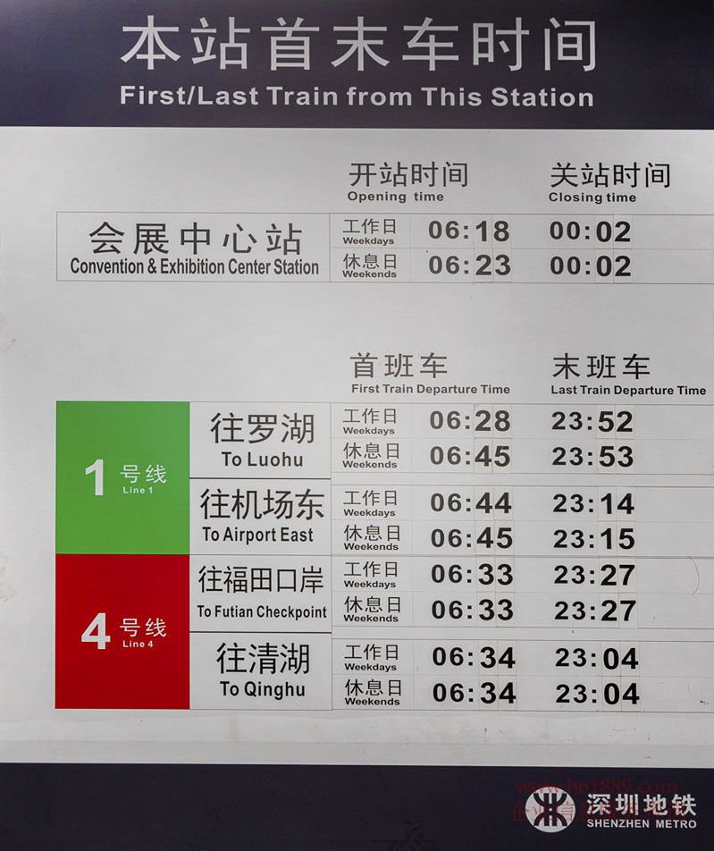 4號線:往福田口岸:06:33-23:24、往清湖:06:33-23:03