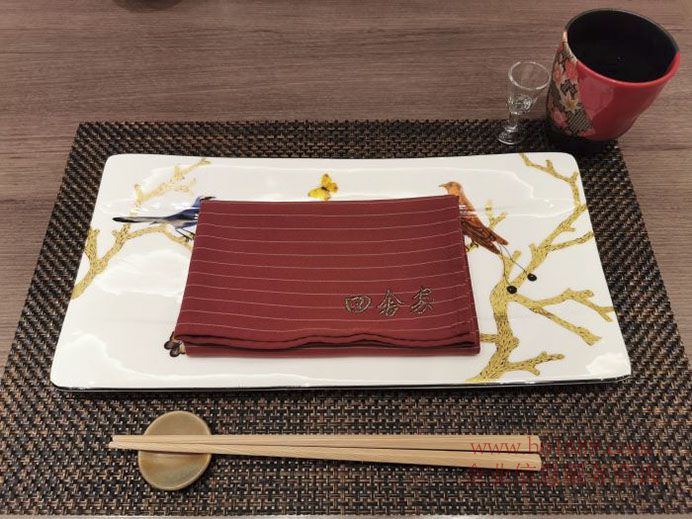 田舍家的餐具均來自日本品牌,每一個(gè)細(xì)節(jié)都非常高端用心。用餐前都會擺好餐具,筷子碟子和桌布都有自己的位置,一點(diǎn)都不可以錯(cuò)。