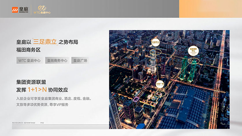 皇庭中心【皇庭中心大廈】資源優(yōu)勢:皇庭以三足鼎立之勢布局、福田商務(wù)區(qū)、WTC皇庭中心、皇崗商務(wù)中心、皇庭廣場、集團資源聯(lián)盟發(fā)揮1+1 >N協(xié)同效應(yīng)、入駐企業(yè)可享受皇庭集團商業(yè)、酒店、度假、金融、文旅等多項優(yōu)勢資源、尊享VIP服務(wù)
