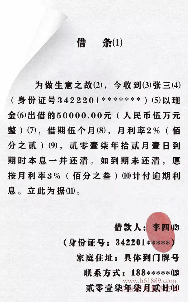 13、寫上借款人家庭住址和聯(lián)系方式,因為后期訴訟立案需要被告信息。