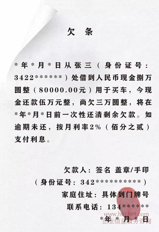 12、借款人姓名應(yīng)寫全名并附上身份證號碼,同時應(yīng)由借款人在手寫的名字上按捺手印。