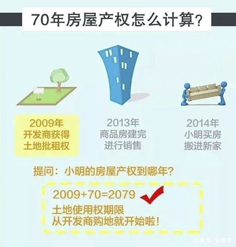 例如,如果某開(kāi)發(fā)商是在2009年取得了一塊居住用地的土地使用權(quán),那么該土地的使用年限就是到2079年截止。也就是說(shuō),土地使用年限是從土地出讓之日開(kāi)始算起,而非業(yè)主取得房產(chǎn)證的日期算起