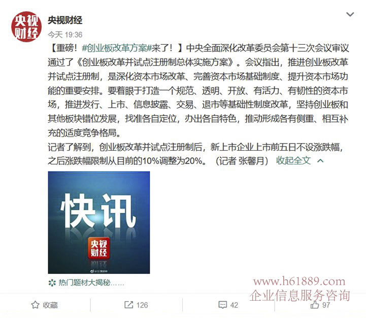 中央全面深化改革委員會通過了創(chuàng)業(yè)板試點注冊制方案