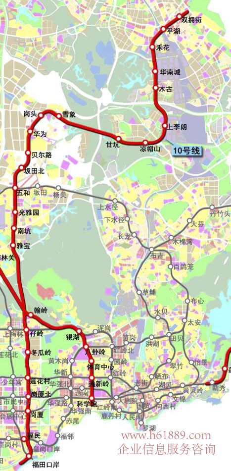 地鐵10號線為福田口岸到平湖中心站點名稱