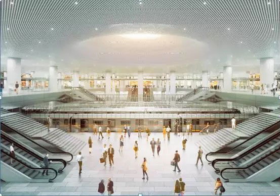 根據(jù)規(guī)劃,這座樞紐以深圳新時期建設地下綜合樞紐國際化、現(xiàn)代化的理念為目標,在傳統(tǒng)地下空間中引入自然光,通過下沉廣場將地下空間室外化,即是城市公共服務空間又是中心區(qū)核心商業(yè)空間、工地內(nèi)安裝噴淋系統(tǒng)定期灑水防塵