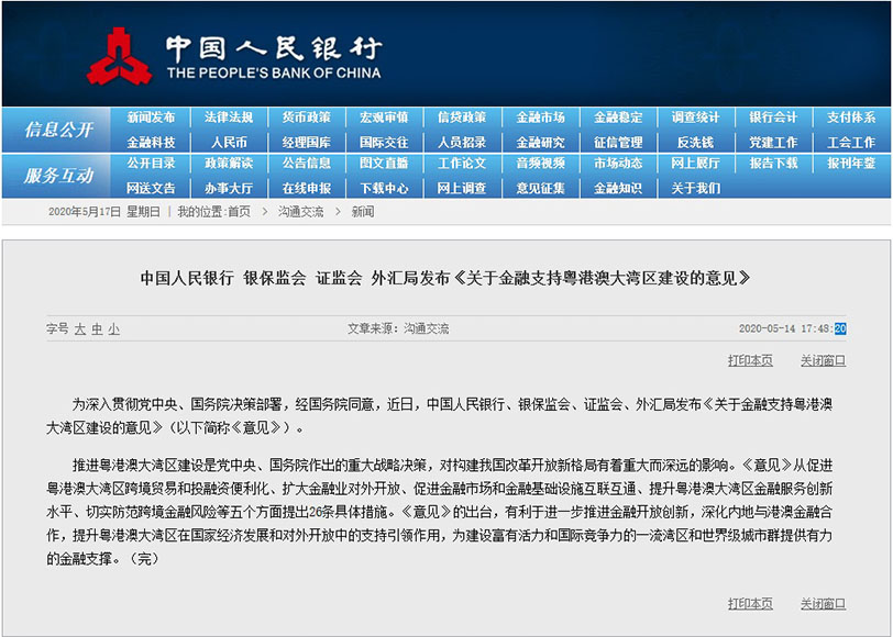 中國(guó)人民銀行 銀保監(jiān)會(huì)證監(jiān)會(huì) 外匯局發(fā)布《關(guān)于金融支持粵港澳大灣區(qū)建設(shè)的意見(jiàn)》