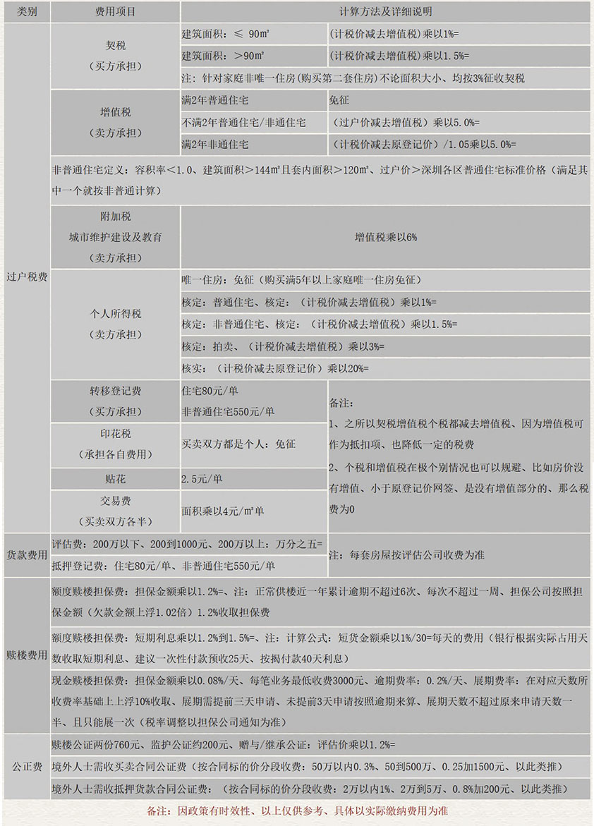 附:二手房交易稅費表圖片