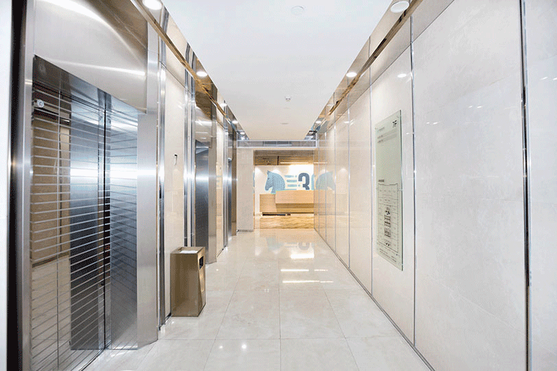 低3部客梯,梯速3.5m/s、中高區(qū)4部客梯、梯速5m/s、等待時間短、運行速度快