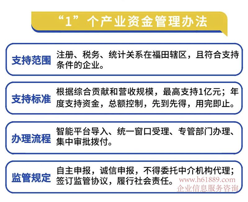 “1”個產(chǎn)業(yè)資金管理辦法、支持范圍:注冊、稅務(wù)、統(tǒng)計關(guān)系在福田轅區(qū)、且符合支持條件的企業(yè)