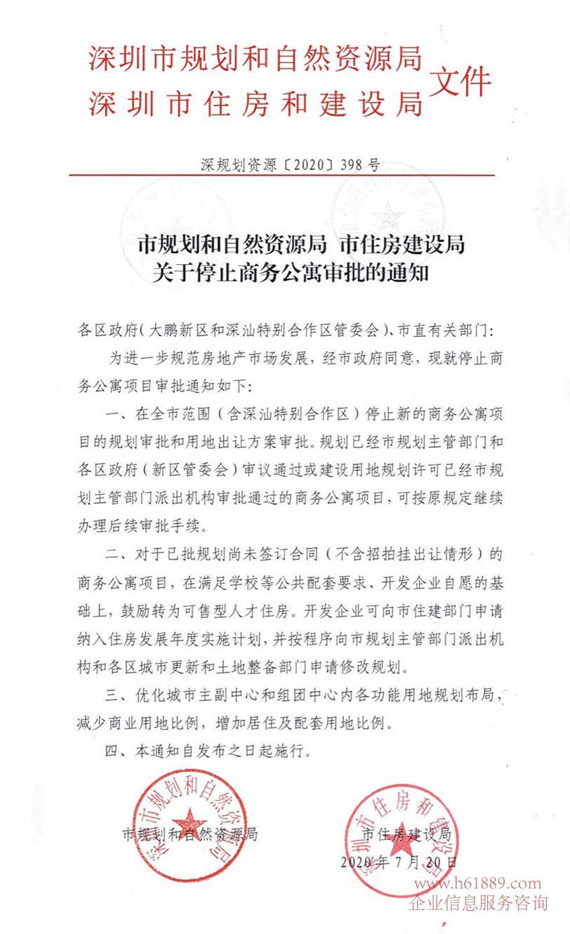 市規(guī)劃和自然資源局 市住房建設(shè)局關(guān)于停止商務(wù)公寓審批的通知