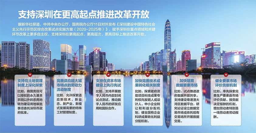 《深圳建設(shè)中國特色社會主義先行示范區(qū)綜合改革試點實施方案(2020-2025年)》主要內(nèi)容如下