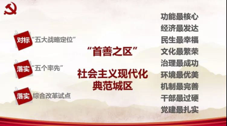 對標:五大戰(zhàn)略定位、落實:五個率先、落實:綜合改革試點、首善之區(qū)、社會主義現(xiàn)代化典范城區(qū)