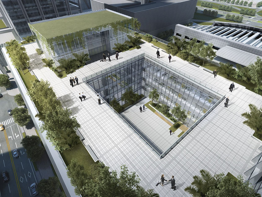 廣電金融中心:西輔樓、整棟出租、特色中庭空間:平面內(nèi)設(shè)置綠色通高中庭、提升總部辦公舒適度