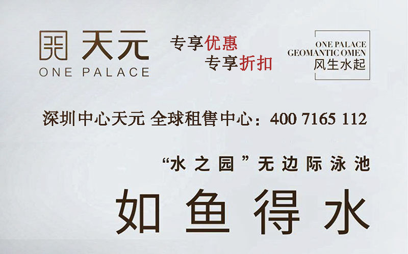 深圳中心天元、專享優(yōu)惠、專享折扣、風(fēng)聲水起、水之園、無邊際泳池、如魚得水、深圳中心天元、崗廈天元花園