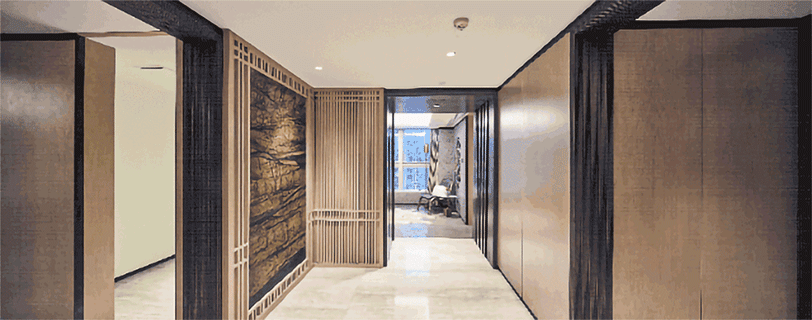 深圳中心天元、崗廈天元花園、打開玄關(guān)另一道隱形門,即見書房空間和一間套房。以玄關(guān)與書房為圓心,以藝術(shù)長(zhǎng)廊為軸線,將北向的動(dòng)區(qū)即客廳+廚房以及南向的靜區(qū)即三間臥室實(shí)現(xiàn)有效的動(dòng)靜、干濕分區(qū)