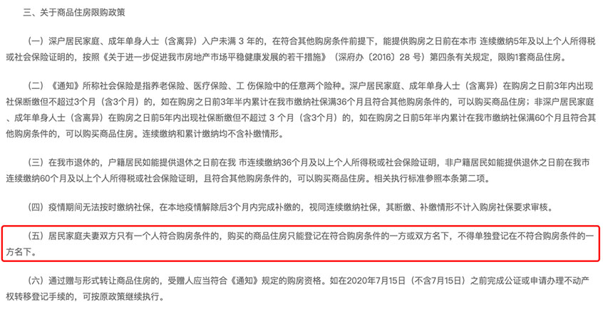 根據(jù)2020年7月29日深圳市住建局發(fā)布的《關(guān)于進(jìn)一步促進(jìn)我市房地產(chǎn)市場(chǎng)平穩(wěn)健康發(fā)展的通知》: