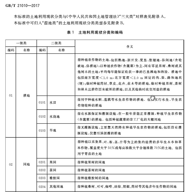《土地利用現(xiàn)狀分類》中詳細(xì)的類別介紹