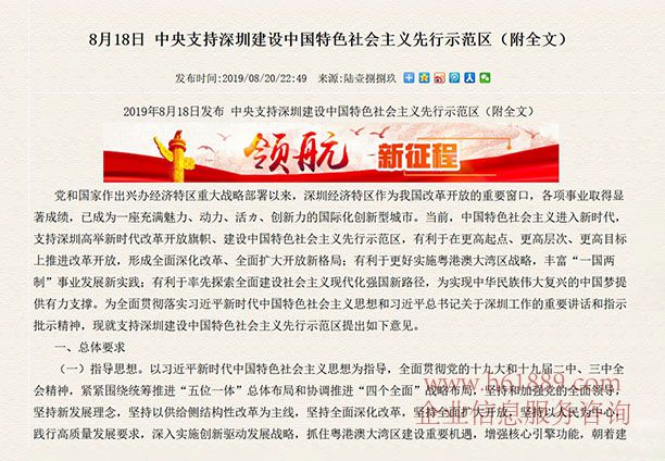 點擊字體鏈接進入:2019年8月18日發(fā)布 中央支持深圳建設中國特色社會主義先行示范區(qū)(附全文)