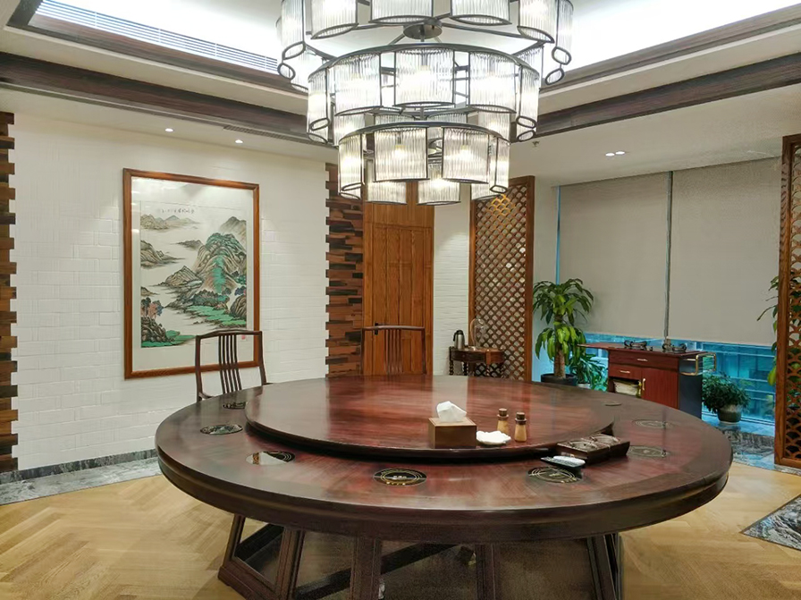 豪華中式裝修風(fēng)格:帶全套家私:有廚房和高檔餐廳:具備上下水功能:適合辦公和接待
