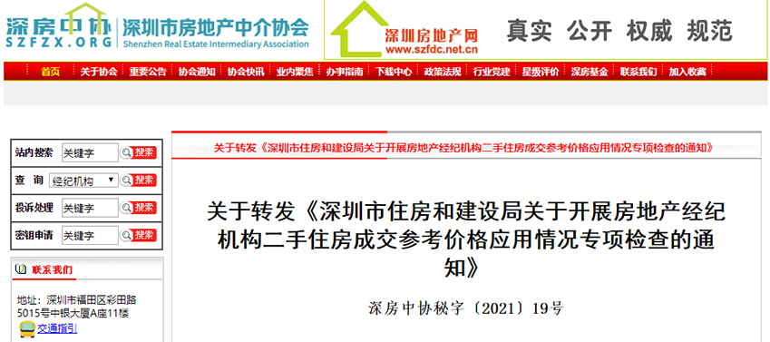 2021年2月23日,深圳市住建局發(fā)布《關(guān)于開展房地產(chǎn)經(jīng)紀機構(gòu)二手住房成交參考價格應(yīng)用情況專項檢查的通知》,嚴厲查處房地產(chǎn)經(jīng)紀機構(gòu)二手住房掛牌價格超出成交參考價格的行為,引導(dǎo)理性交易,穩(wěn)定市場預(yù)期,促進我市房地產(chǎn)市場平穩(wěn)健康發(fā)展。