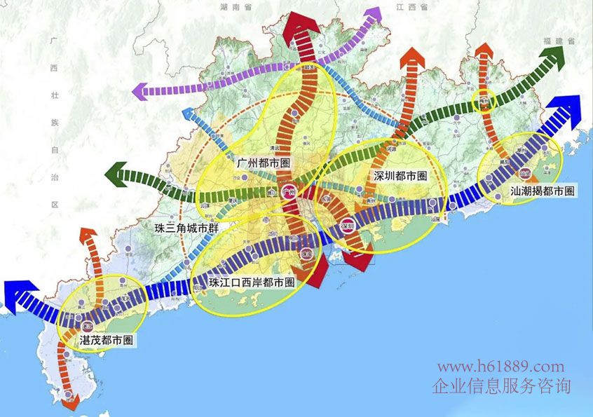 60.培育壯大廣州、深圳、珠江口西岸、汕潮揭、湛茂五大都市圈,強(qiáng)化都市圈內(nèi)市政基礎(chǔ)設(shè)施協(xié)調(diào)布局,推進(jìn)都市圈內(nèi)城市間產(chǎn)業(yè)分工協(xié)作,強(qiáng)化生態(tài)環(huán)境共保共治,推進(jìn)公共服務(wù)共建共享;