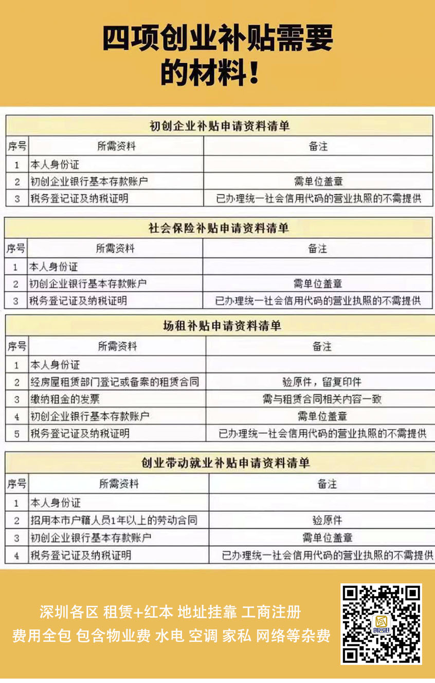 通過深圳市人社局發(fā)布的《深圳市人民政府關(guān)于加強(qiáng)創(chuàng)業(yè)帶動(dòng)就業(yè)工作的實(shí)施意見》文件內(nèi)容,我們可以看到深圳中小企業(yè)以及個(gè)體工商戶可以申請(qǐng)到初創(chuàng)補(bǔ)貼、場(chǎng)租補(bǔ)貼、社保補(bǔ)貼、帶動(dòng)就業(yè)補(bǔ)貼四項(xiàng)