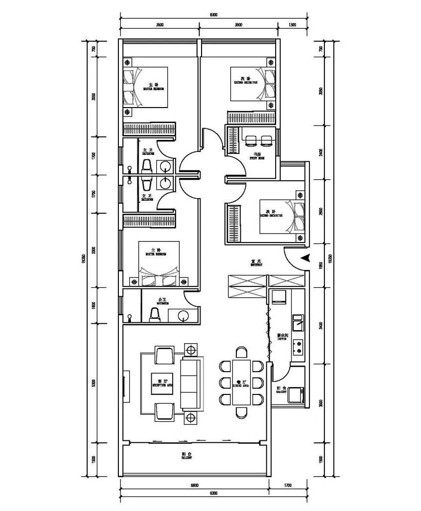 崗廈城 180平米 五房兩廳三衛(wèi) 戶型圖